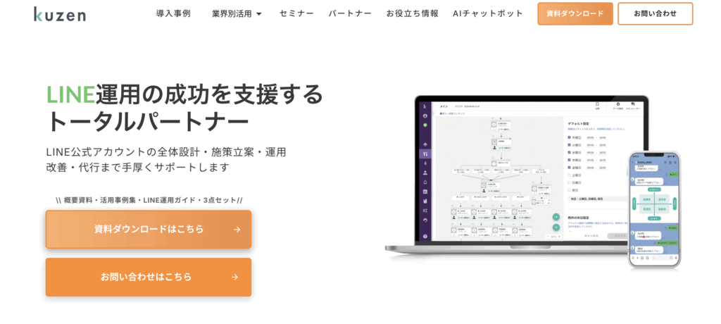 オーダーメイドの公式アカウント運用や離脱防止チャットボット、飲食店向け自動リピーター化パッケージ「ziinie」など、業界別のサービスを展開し、LINE広告やInstagram広告を組み合わせて友だち獲得からミニアプリ開発、RFM分析配信までを一気通貫で支援いたします。