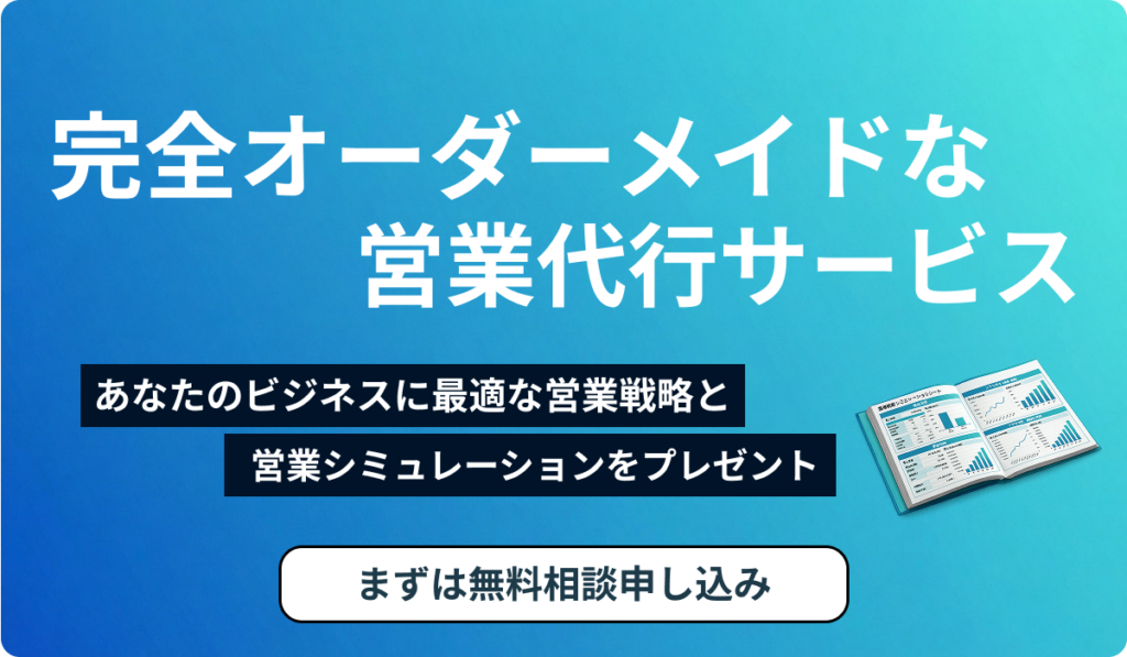 | 月額固定報酬 | 月ごと定額で営業活動を実施。作業範囲は事前合意。 | コストが予測しやすく、広範な活動を委託可能。 | 成果が出ない場合も一定コストが発生。 | 中長期的な営業戦略、一定ボリュームの活動が必要な場合。 |